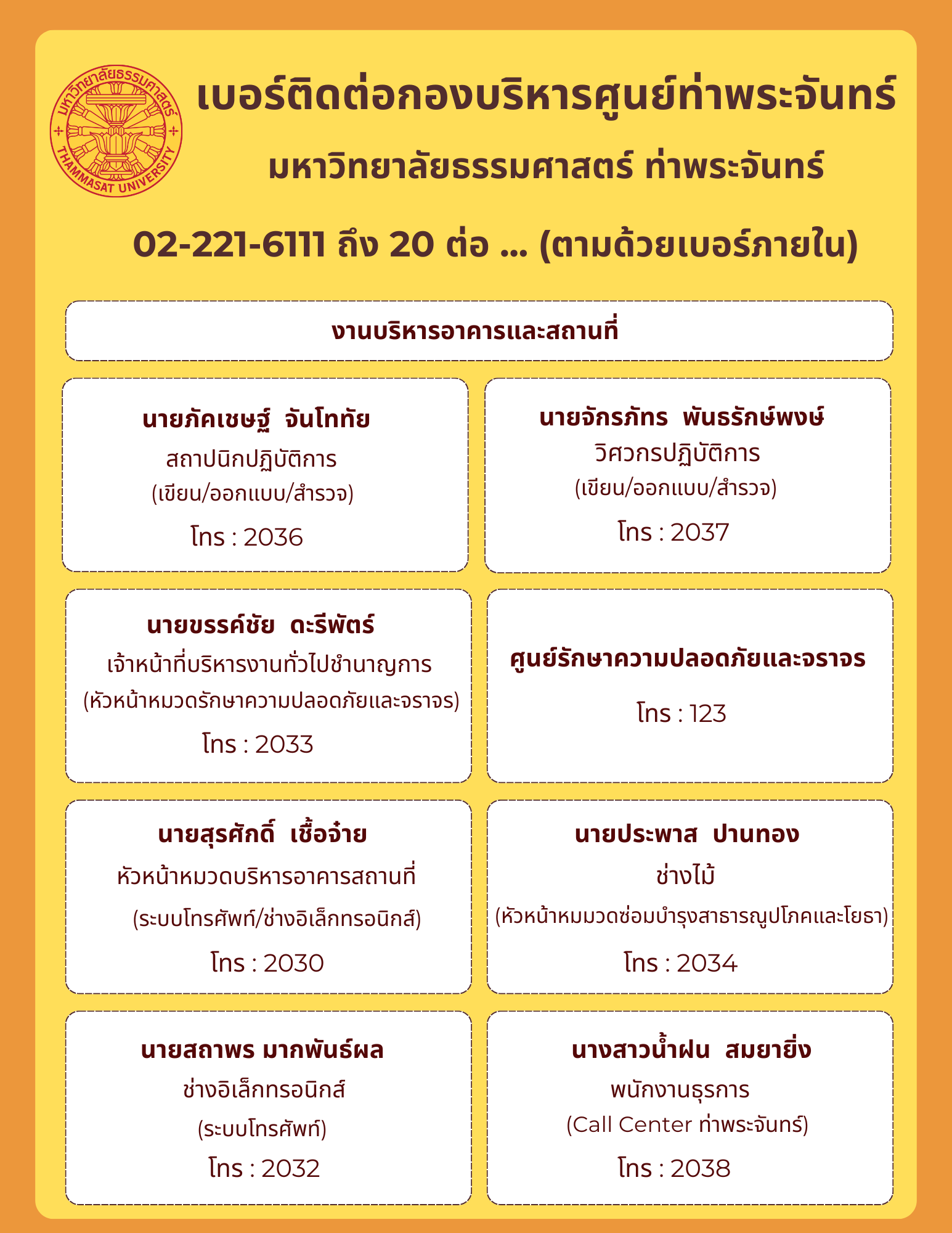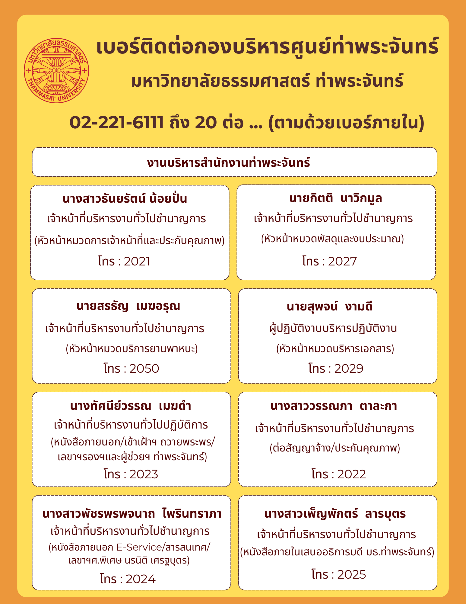 แจ้งเบอร์โทรศัพท์ระบบ IP (IP Phony) ของหน่วยงานภายในมธ.ท่าพระจันทร์